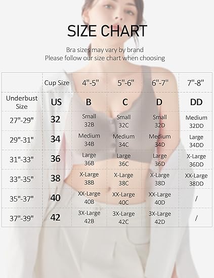 • Effortless Front Closure: The front-clasp design makes getting dressed easier by eliminating back hooks and offering a smooth front closure. It’s perfect for older women, those with limited mobility, or anyone looking for a simple and convenient option. Bra sizes may vary by brand. Please follow our size chart when choosing