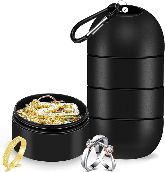 - Portable & Best Travel Solution: Our black jewelry holder keychain(2″*3.5″*2″) is lightweight, sturdy and portable, so it is great for your travel, camping and exploration. The sports jewelry holder has a keychain to freely put this in your purse, handbag, suitcase, backpack or sports bottle even waistband.