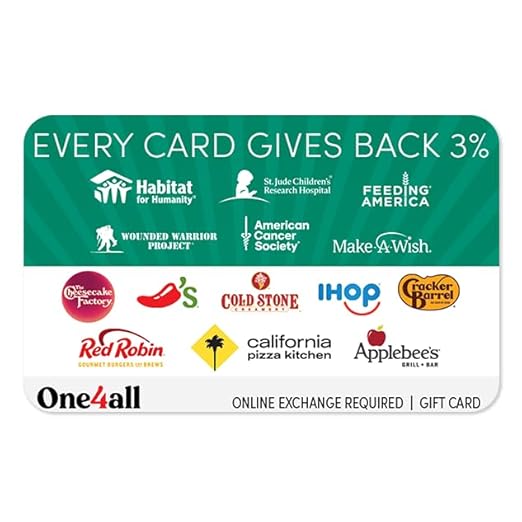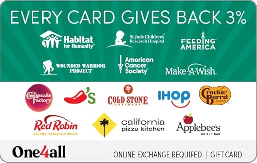 - Whatever you choose, it comes with a side of feeling good knowing 3% of your gift card redemption will be donated to the cause of your choice from the following options: American Cancer Society, Feeding America, Habitat for Humanity, Make-A-Wish, St. Jude Children’s Research Hospital, or Wounded Warrior Project.