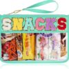 • Large Capacity: 12.2”×8.46”(L×W), This chenille letter bag has a perfect size and is easy to carry. It can accommodate cosmetics, toiletries, sunscreen, hair ties, snacks and other items. This snacks bag pouch also comes with a carry strap, making it easy for you to carry it with you at all times